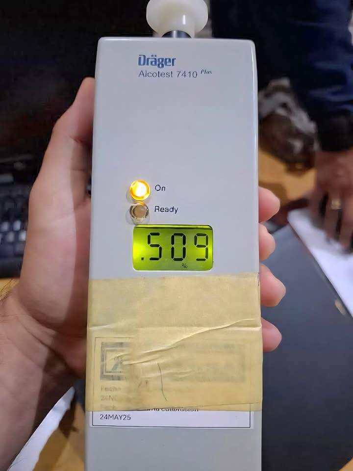 El hombre, conducía un vehículo sobre la calle principal del referido lugar, cuando fue intervenido por los agentes policiales y al realizarle la prueba de alcotest dio positiva con 509°.